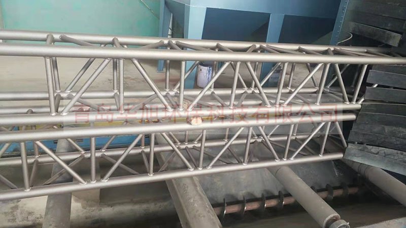威海用戶購買的鐵架子拋丸機(jī)、圓管鐵架子拋丸除銹機(jī)主要用于清理圓管焊接而成的方架子表面的鐵銹及焊接后的焊渣和污物等,以便后期做防腐噴涂處理,同時(shí)也能起到強(qiáng)化的目的。